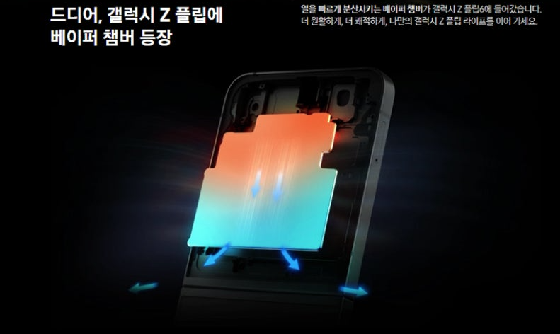 갤럭시 Z플립6는 플립 시리즈 최초로 베이퍼 챔버를 도입하여, 오래전부터 지적되었던 발열 문제를 해결할 것으로 기대됩니다.