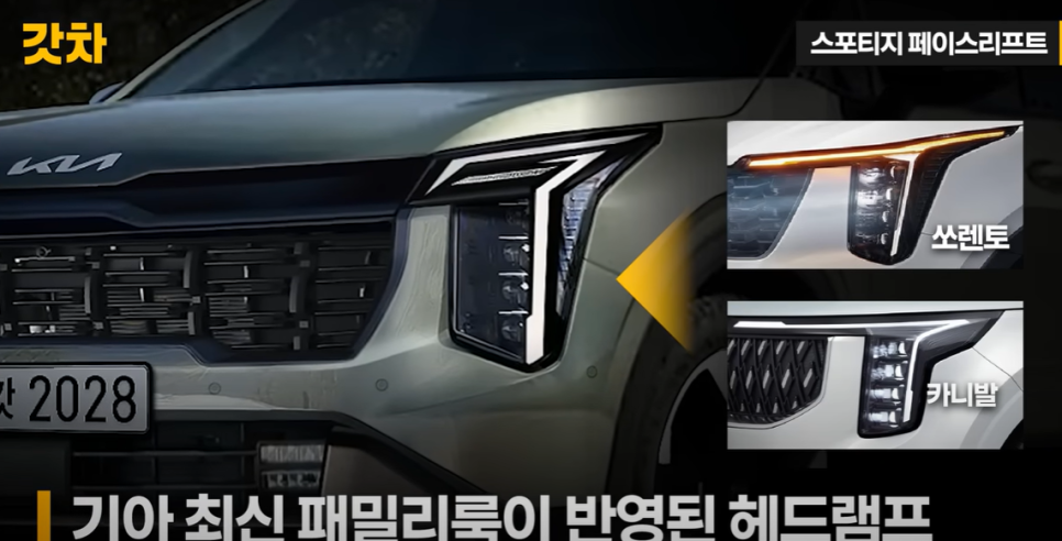 신형 스포티지의 예상 디자인은 이미 유출된 예상도를 통해 확인할 수 있는데요, 신형 쏘렌토와 유사한 패밀리룩이 적용될 것으로 보이죠. 전면부는 최신 오퍼짓 유나이티드 디자인 언어를 채택해, 가로로 넓게 펼쳐진 주간주행등과 더 넓어진 그릴이 특징입니다. 또한, 바깥 가장자리에 배치된 주간주행등이 디자인의 독창성과 존재감을 더욱 강조할 것으로 예상됩니다.